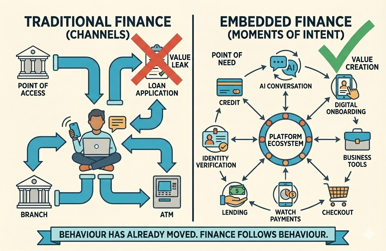This is why large platforms and Big Tech have moved so naturally into financial services. Not because they aspire to become banks, but because platforms naturally absorb the transactions already occurring within their ecosystems. Finance follows behaviour. This is not a new phenomenon. Money has always followed people. We explored this in more detail in our recent post, From Cash to Card to Code: Money Follows People. What has changed is the environment in which that behaviour now occurs. When behaviour shifts but delivery models do not, value leaks.