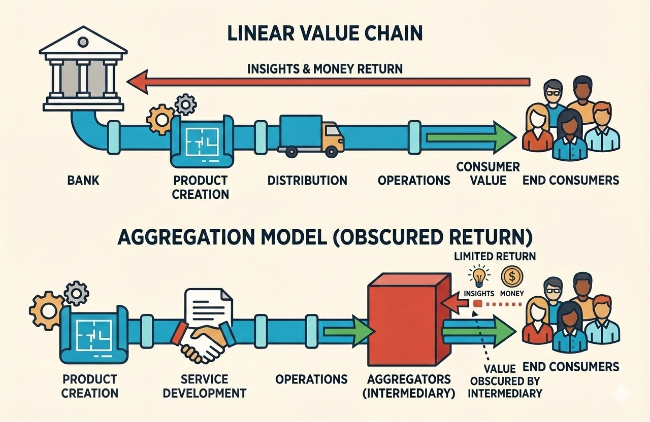 Like most traditional industries, banks and credit unions are built on linear value chains. Products are created internally, delivered through owned channels, and growth is driven by pushing greater volume outward as money and insight return to the system.